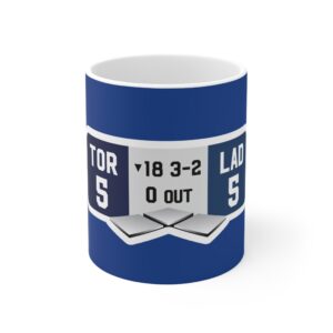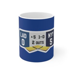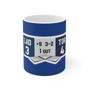 A warm, scoreboard-style ceramic mug that brings the stadium home. Deep navy wraps the surface while a retro-inspired scoreboard graphic—complete with team abbreviations, runs and outs—sits center stage. It’s the…