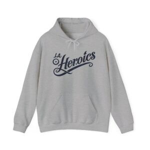 This soft, midweight hoodie brings quiet confidence and vintage charm to everyday wear. The clean white fleece showcases a hand-lettered ‘LA Heroics’ chest script that reads like a hometown sports…